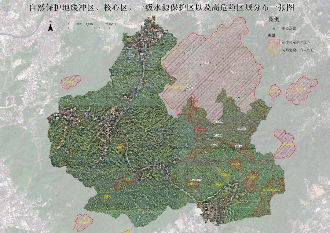 为方便公众了解具体管控范围,通告附有《五桂山街道自然保护地缓冲区、核心区、一级水源保护区及高危险区域等禁止进入区域示意图》,明确标注了各区域的边界和重点管控点位。